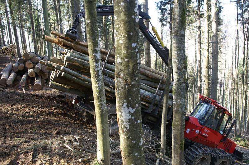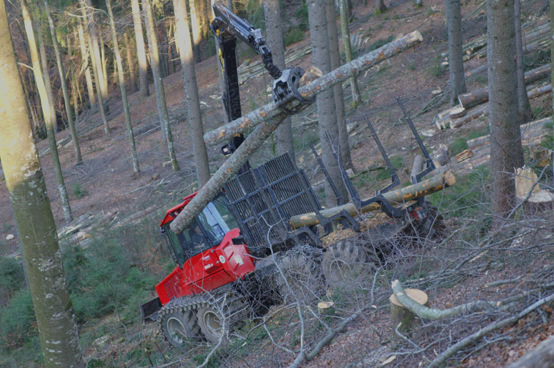 Mechanisierte Holzernte mit Harvester und Rückezug von Erstdurchforstung bis Endnutzung